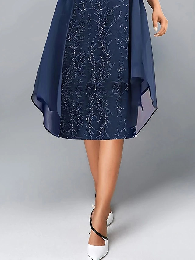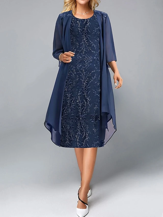 Women’s Two Piece Dress Set Party Dress Sequin Dress Party Outdoor Fashion Streetwear Embroidered Sequin Midi Dress Crew Neck 3/4 Length Sleeve Plain Regular Fit Navy Blue Fall Winter S M L XL XXL