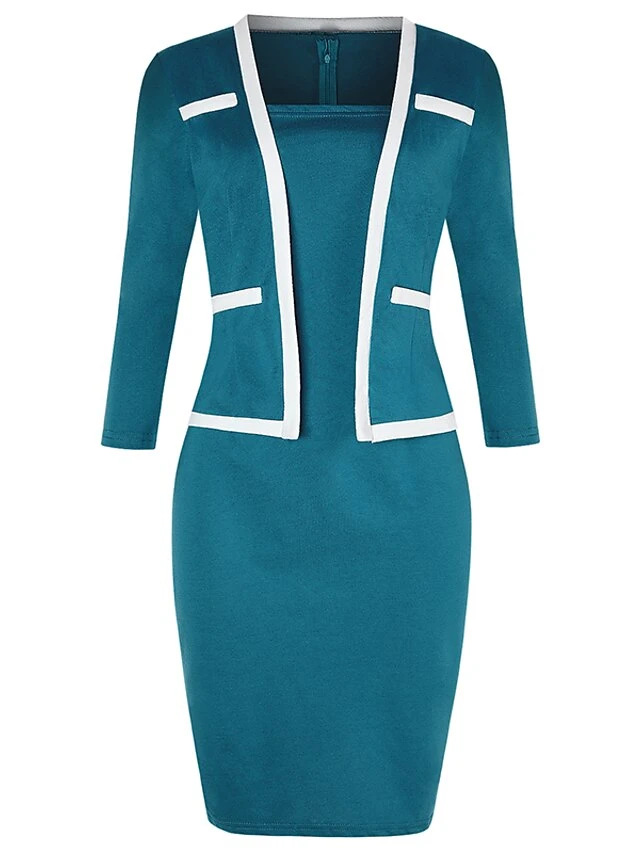 Women’s Work Dress Sheath Dress Church Dress Midi Dress Black Dusty Blue 3/4 Length Sleeve Pure Color Fake Two Piece Spring Fall Winter Square Neck Modern Winter Dress Office Fall Dress 2023 S M L XL
